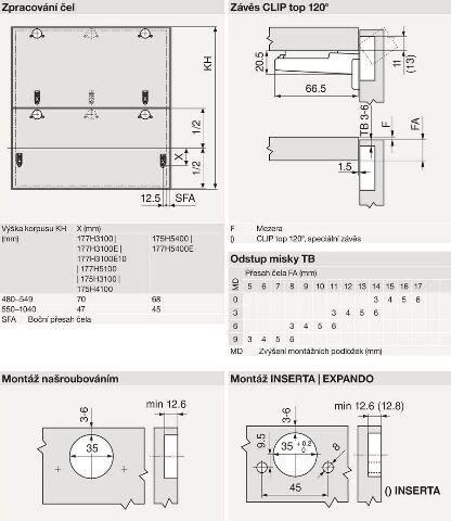 Blum závěs CLIP top 120°, naložený, bez pružiny, na vrut