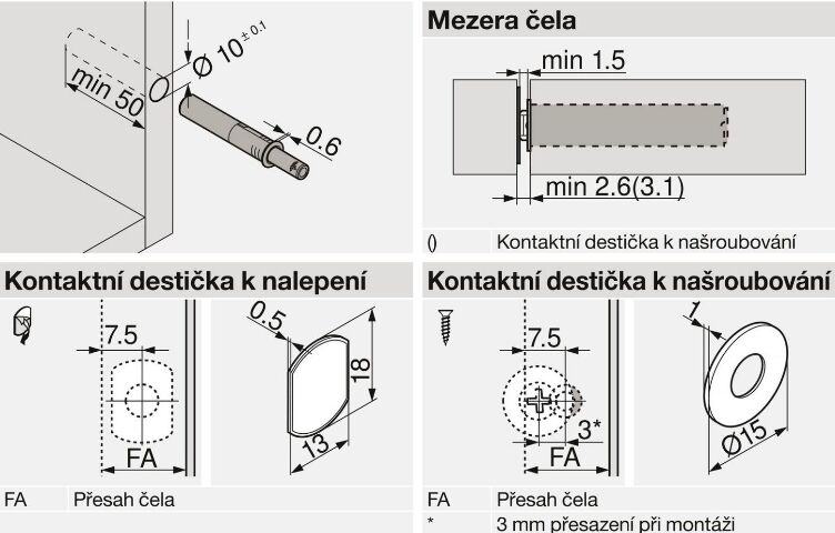Pro optimální komfort pohybu dvířek je vhodné TIP-ON kombinovat s osvědčeným závěsem CLIP top bez pružiny (dlouhá verze s dorazem se hodí i pro závěsy s pružinou).