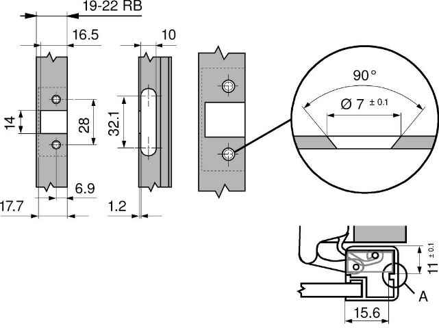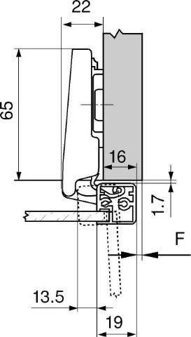 Blum závěs CLIP 95° na úzký ALU rámeček,naložený na vrut, s pružinou
