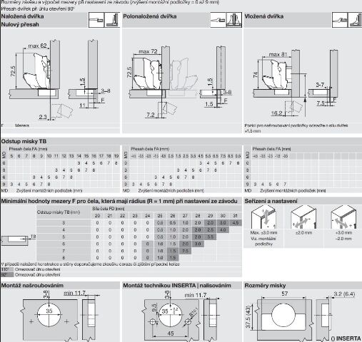 - s INSERTA navíč bez použití nářadí misek