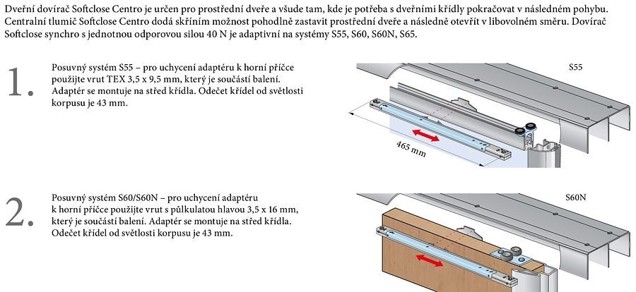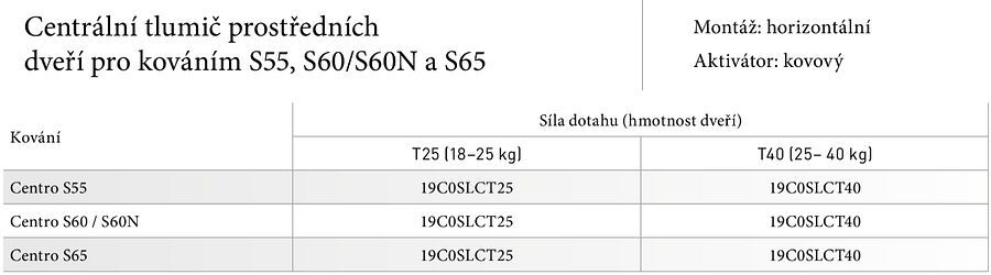 Centrální tlumič pro prostřední dveře pro systémy S55/S60/S65