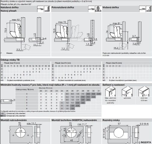 Nutno doobjednat montážní podložku CLIP základní podložky: ostatní viz. katalog Blum
