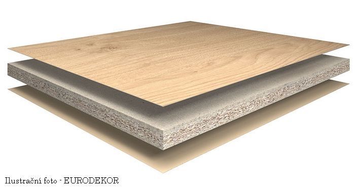 Nosná deska je Eurospan dřevotřísková deska E1 P2 pro použití v interiéru.