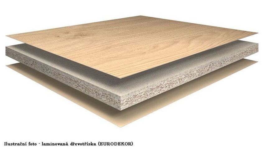 Nosná deska je Eurospan dřevotřísková deska E1 P2 pro použití v interiéru.