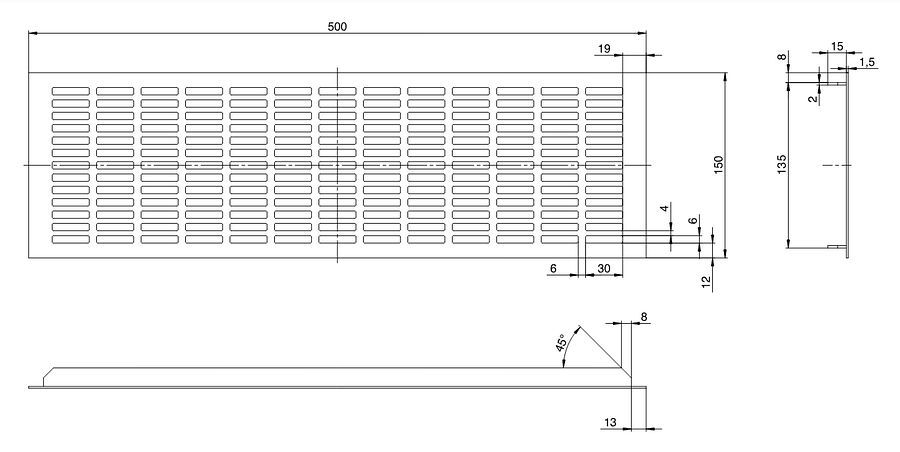 - Hliníková větrací mřížka, 150x500 mm, bílá