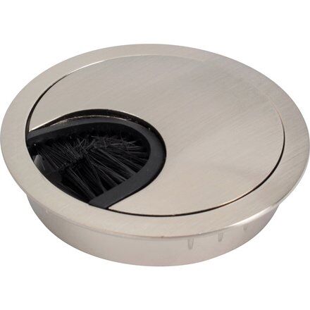 Kulatá kovová kabelová průchodka sloužící k protažení kabelů deskou pracovního stolu.