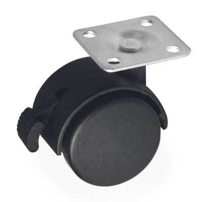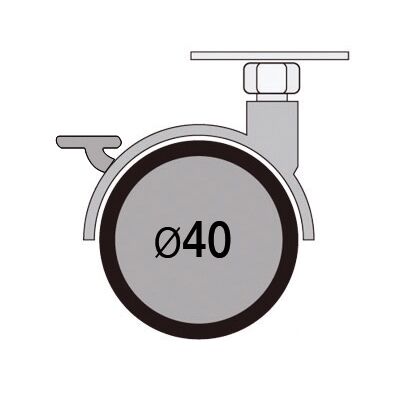 Kolečko nábytkové 40mm, plotnička 42x42x2 mm, brzda, černá, 30kg