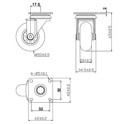 - Kolečko nábytkové 50mm, plotnička 50x50 mm, transparentní...