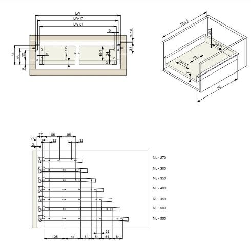 - pro sestavení zásuvky je potřeba dodat dno, zadní a čelní panel zásuvky