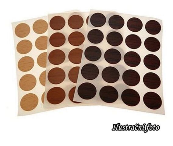 Samolepící krytka, pro překrytí zápustných hlav vrutů, konfirmátů, šroubů, excentrů