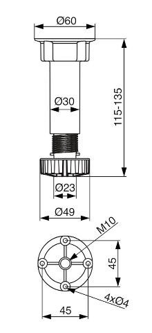 - Noha rektifikační 120 mm + příruba