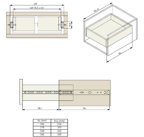 - kuličkový výsuv pro instalaci do 17mm drážky v bočnici zásuvky