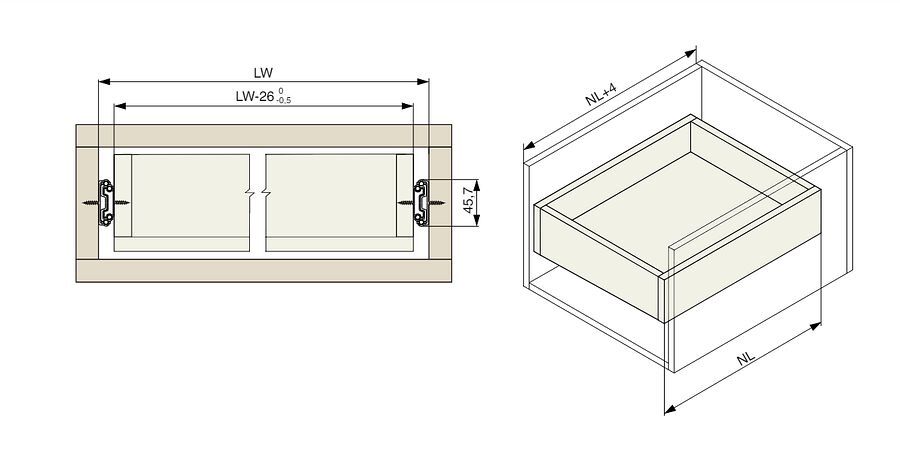 - kuličkový výsuv o výšce 45mm pro celodřevěné zásuvky