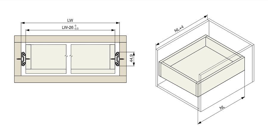 - kuličkový výsuv o výšce 45mm pro celodřevěné zásuvky