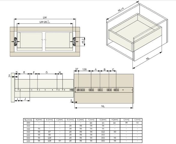 - kuličkový výsuv o výšce 45mm pro celodřevěné zásuvky