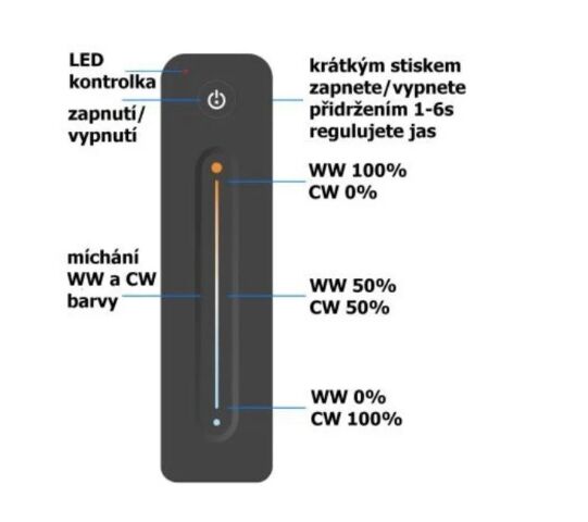 Dálkový ovladač dimLED OV LINEA CCT je bezdrátový radiofrekvenční ovládací systém, jednoho ovladače a několik přijímačů.