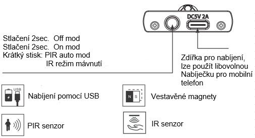 Doba svícení na jedno nabití: cca 1 měsíc pokud svítidlo svítí 5min. denně