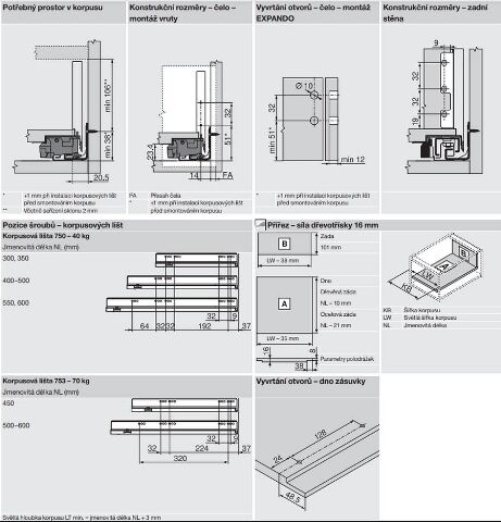 - výsuv S Blumotion nebo TIP-ON Blumotion s použitím i pro SERVO-DRIVE P+L