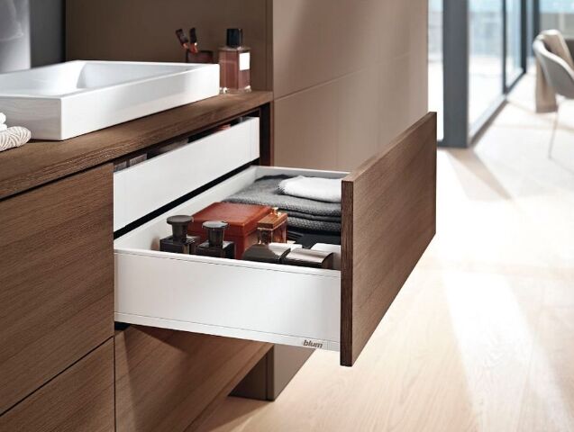- plynulý dotah díky systému BLUMOTION, který zpomaluje od začátku do konce tudíž nedojde k rozházení věcí v zásuvce