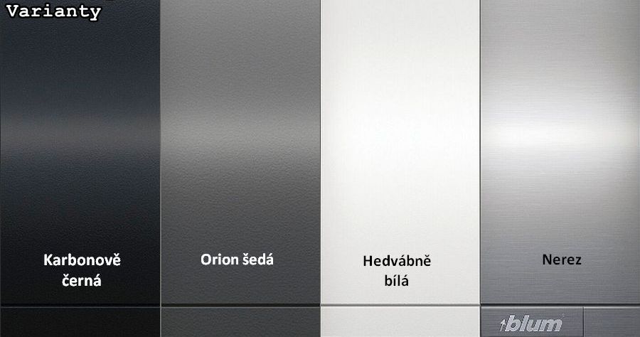 - bočnice z oceli v barvách: Hedvábně bílá matná, Karbonově černá matná, Nerezová s úpravou proti otiskům prstů a Orion šedá matná (tmavě šedá)