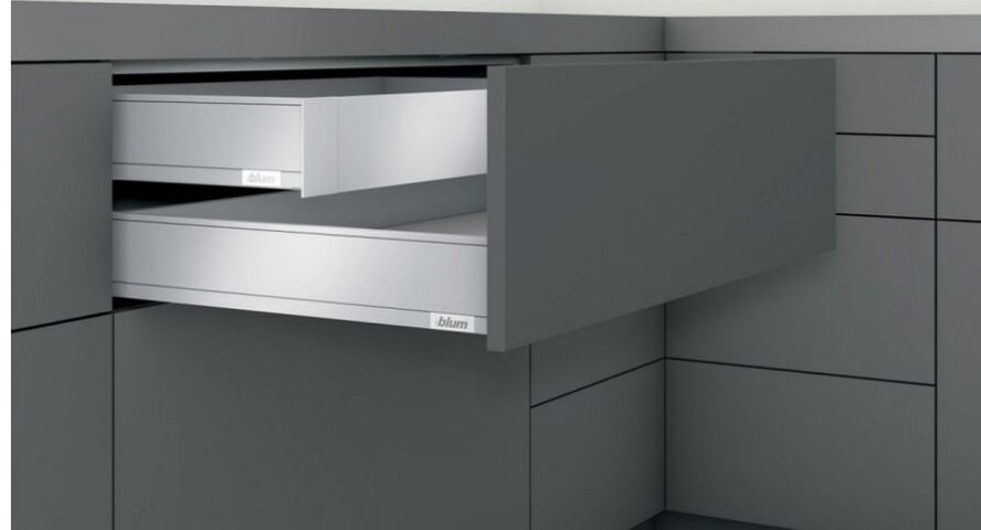- plynulý dotah díky systému BLUMOTION, který zpomaluje od začátku do konce tudíž nedojde k rozházení věcí v zásuvce