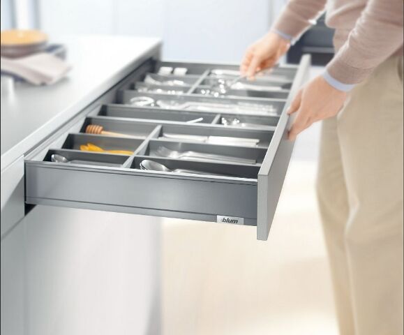 - plynulý dotah díky systému BLUMOTION, který zpomaluje od začátku do konce tudíž nedojde k rozházení věcí v zásuvce