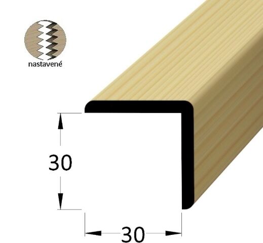 Lišta dřevěná rohová vnější nastavovaná, krycí schopnost 30 x 30 x 2400mm, smrk