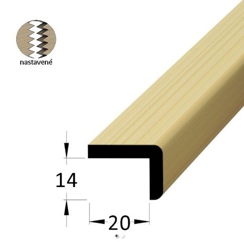 Lišta dřevěná tvaru L, materiál smrk, krycí schopnost 14 x 20 x 2400 mm