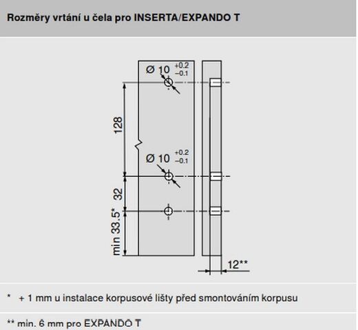 - čelní příchyt vrut/inserta - nutné přiobjednat v počtu 2+2ks