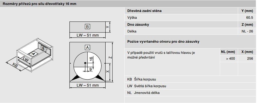 - výsuv 500mm 40kg P+L