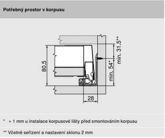 - Jedna TOB kolejnice s tlumením s možností přidat TIP-ON jednotku pro otevírání push/otevření dotykem