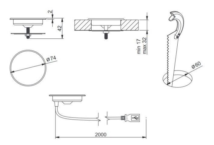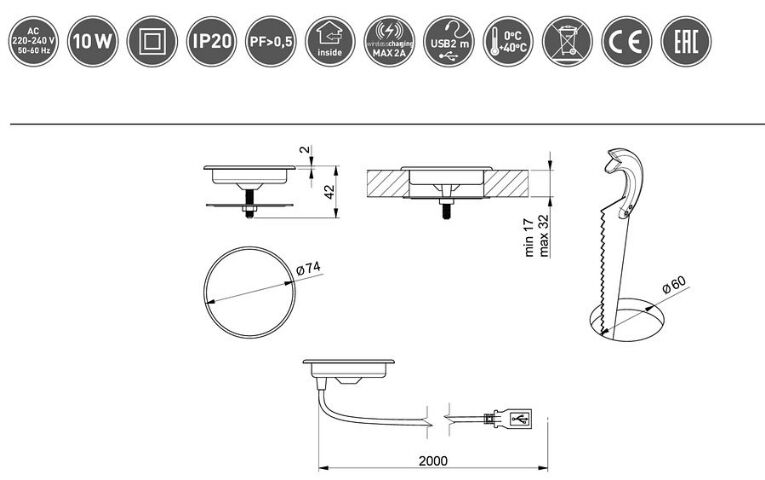 Délka přívodního kabele: 2m USB A (adaptér na 220V součástí balení)