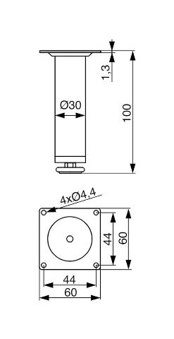 Ocelová nábytková noha kulatá s regulovatelnou délkou.