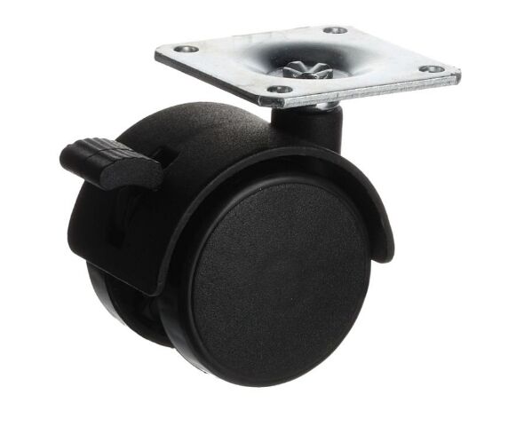 Kolečko nábytkové 40mm, plotnička 42x42x2 mm, brzda, černá, 30kg