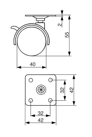 - Kolečko nábytkové 40mm, plotnička 42x42x2 mm, brzda,...