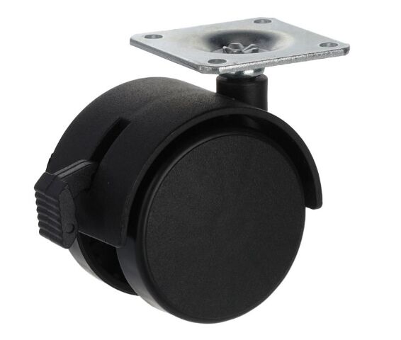 Kolečko nábytkové 50mm, plotnička 42x42x2 mm, brzda, černá, 40kg