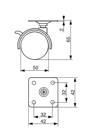 - Kolečko nábytkové 50mm, plotnička 42x42x2 mm, brzda,...