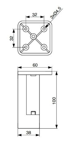 - Noha nábytková 38x38 mm, H100, lesklý chrom