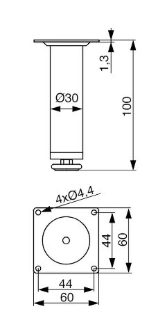 - Noha nábytková kulatá, H100/D30, satin nikl