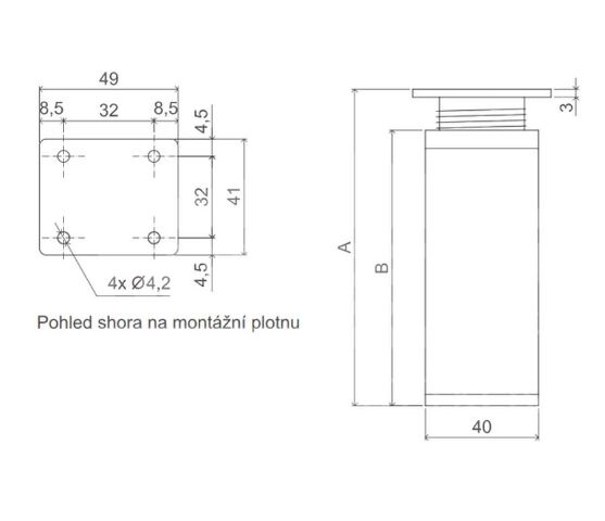 - Noha nábytková hranatá, H100/D40x40, eloxovaný hliník