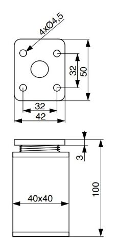 - Noha nábytková hranatá, H100/D40x40, eloxovaný hliník