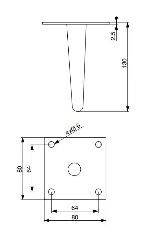 Noha nábytková H130 mm, černá matná