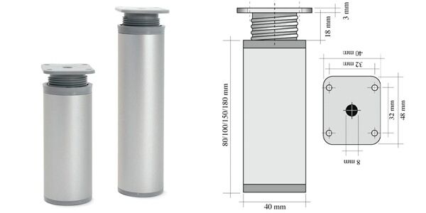 - Noha nábytková kulatá, H150/D40, eloxovaný hliník