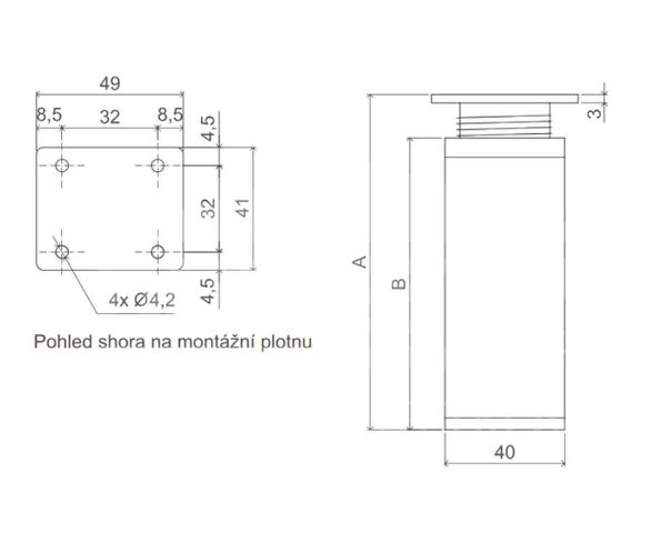 Noha nábytková hranatá, H60/D40x40, černá matná