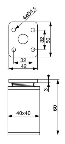- Noha nábytková hranatá, H60/D40x40, černá matná
