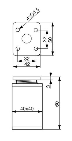- Noha nábytková hranatá, H60/D40x40, imitace nerezové oceli