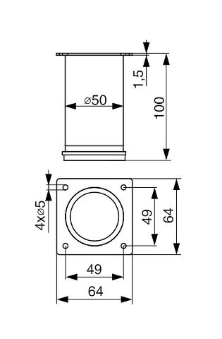 - Noha nábytková kulatá, H100/D50, imitace nerez
