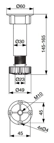 - Noha rektifikační GK30, 150 mm, plastová, černá