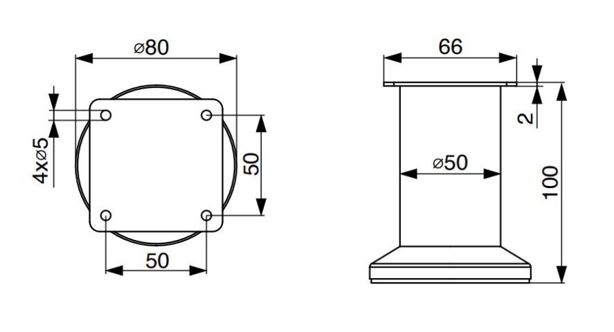 Ocelová nábytková noha kulatá s regulovatelnou délkou.