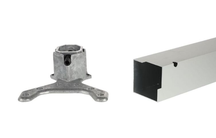 Hliníková stolová noha se čtvercovým profilem 60x60mm a odlévanou přírubou.